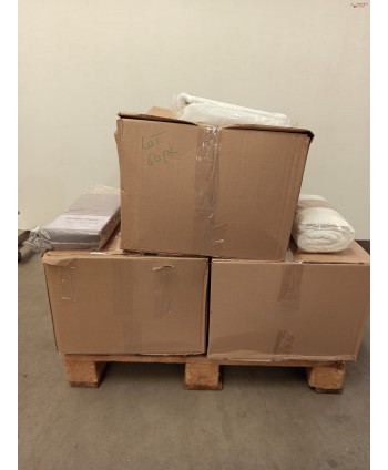 Lot de 60 pièces linges de lit - linge emballés - comprenant : des protèges matelas, des housses de couette, des couvres lit...Etc