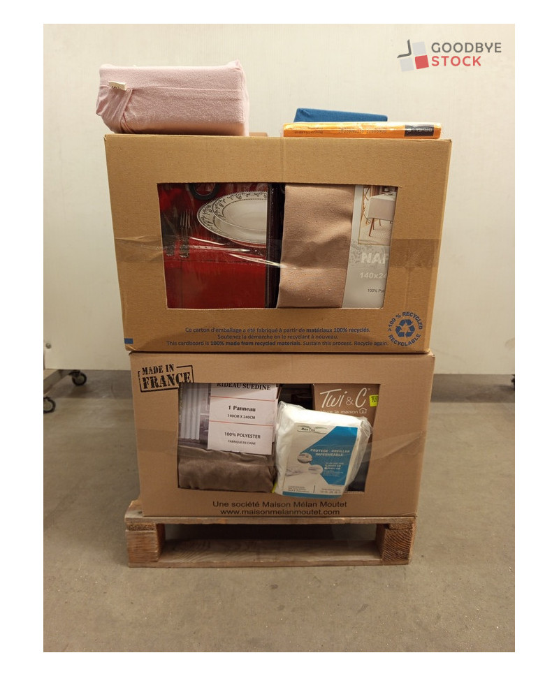 Lot de 60 pièces linges de lit - linge emballés - comprenant : des nappes, draps housses, housses de chaises etc...