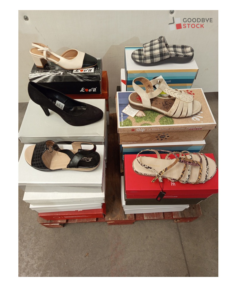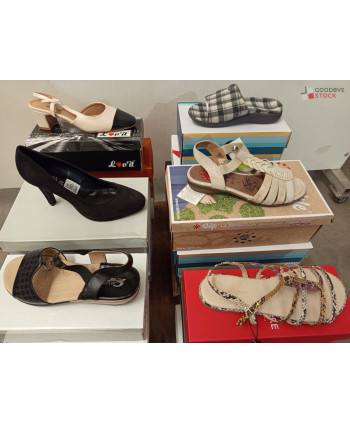 Lot de 24 paires de chaussures en boite adultes - Modèles d'été - pointures : 40x6 41x4 37x4 36x1 38x2 42x2 39x3 45x1 44x1