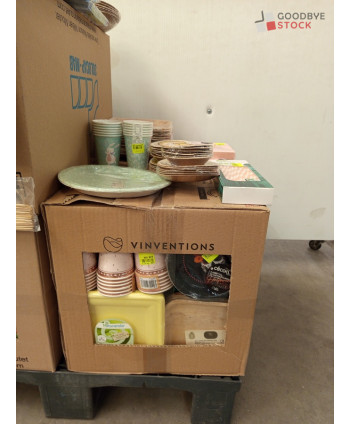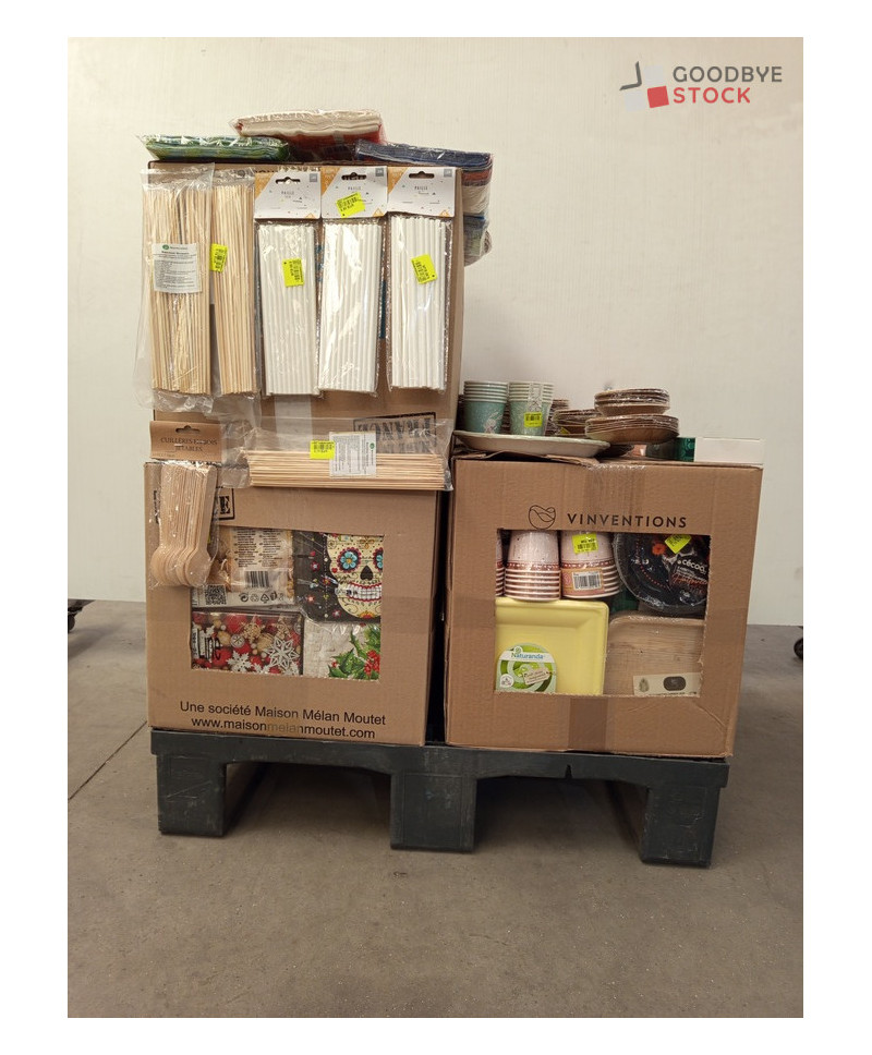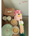 Lot de 400 pièces de vaisselle jetable comprenant des pics à brochettes, des serviettes, des gobelets, des ramequins, des couverts...Etc