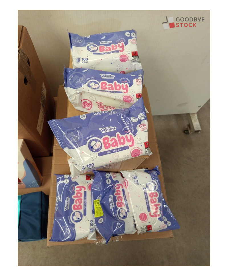 Lot de 120 paquets de lingettes pour bébés de la marque WONDER - 100 lingettes par paquet - DLUO : 12/08/2027