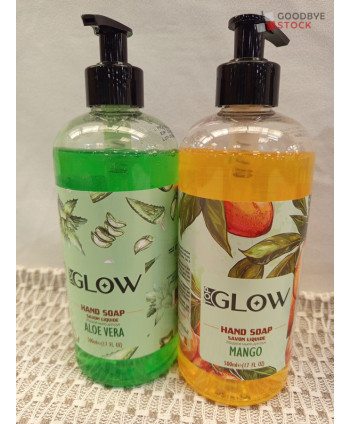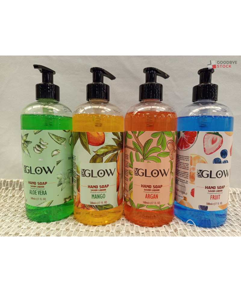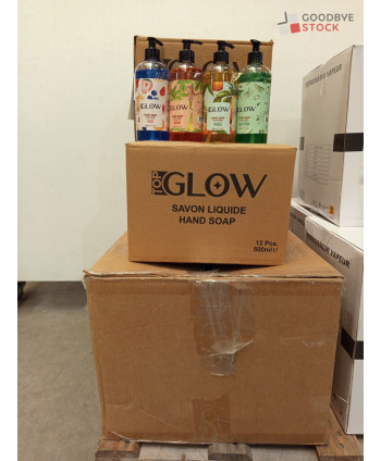 Lot de 70 bouteilles de savon liquide de la marque GLOW - différents parfum