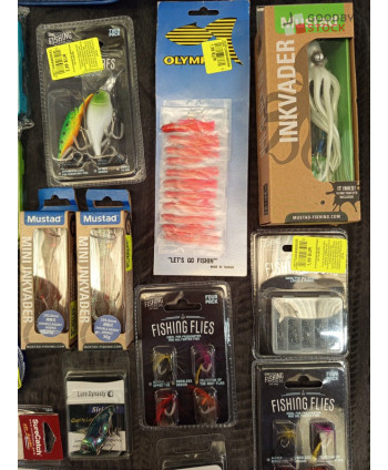 Lot de 200 accessoires de pêche comprenant : des boîtes de rangement, des mouches de pêche, des hameçons, etc....